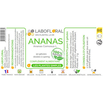 Si vous trouvez de l’ Ananas Labofloral en gélules sur notre site, c’est qu’il fait partie des compléments alimentaires présentant des garanties sérieuses et prouvables, de qualité d'origine, de production et de fabrication et pouvant répondre au standard phyto-sanitaire Européen très élevé.